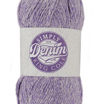 Simply Denim DK is %0% Antipilling Acrylic and 50% Cotton. 306 Yards. US6 Needle. SRP is $8.78. King Cole yarn
